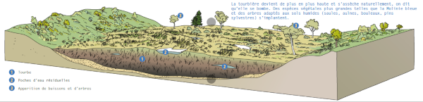 Une grande partie du site s'étend sous la forme d'un radeau tremblant, qui correspond aux premiers stades de formation de la tourbière, cette "jeunesse" lui confère une grande valeur écologique. D'autres zones de tourbière haute active d'âge plus avancé permettent d'observer les différents stades d'évolution des milieux tourbeux.